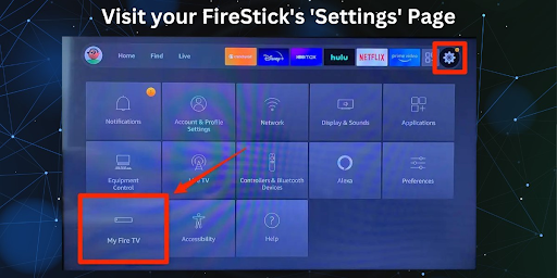 - Visit your Fire TV Stick's 'Settings' page.