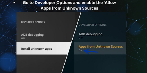 Go back to the 'Settings' page on your Fire TV Stick and navigate to 'Device,' 'Developer Options,' and enable 'Allow ADB Debugging.'