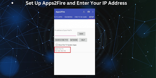 Enter your Fire TV Stick's IP address in the designated field within Apps2Fire. Save the settings.