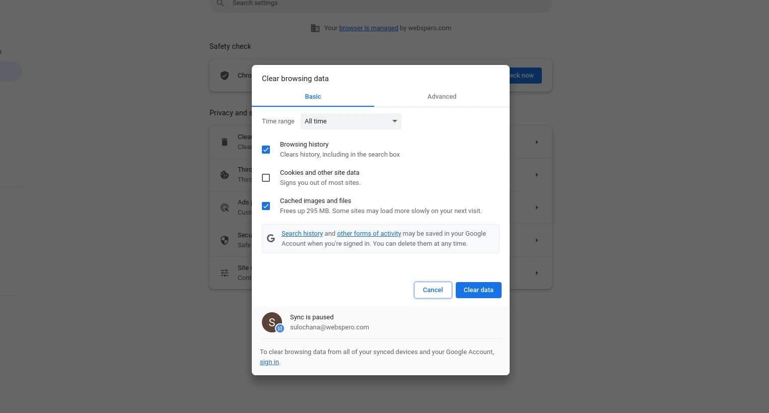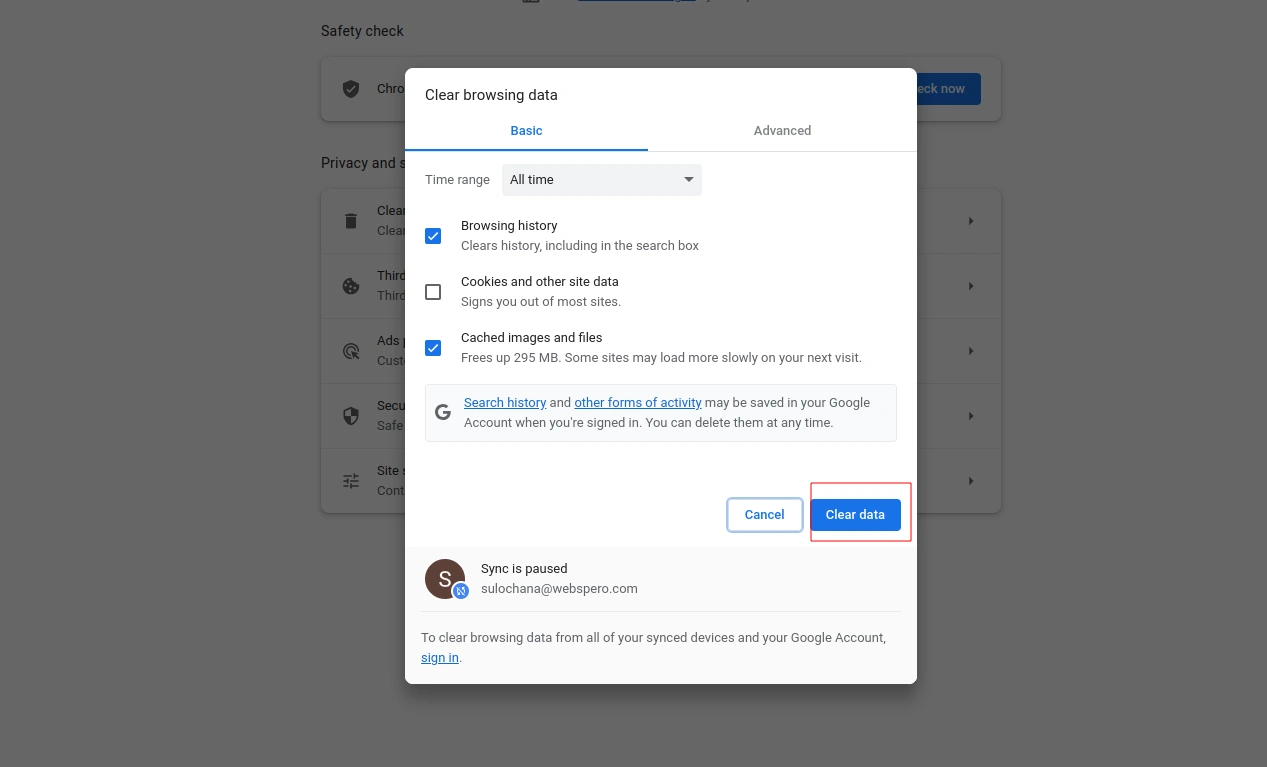 Once you have selected the data and time range (if applicable), click on the "Clear data" button. This will initiate the deletion process.