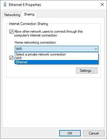 Finally, you can select the “Sharing” tab and select Ethernet to connect to the network.