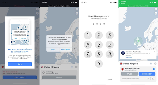 6. Once you allow it, you will have to enter your iPhone password so they can add the VPN configurations.